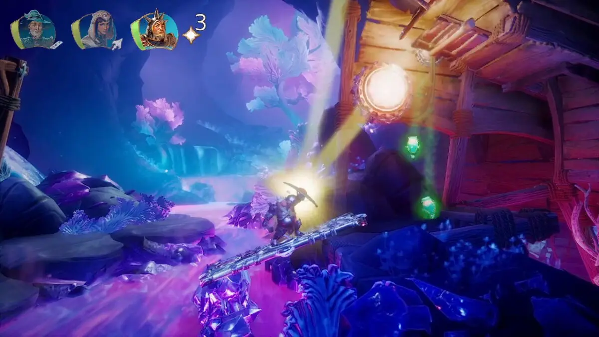 2人で光を反射させて〇にあてる。凍ったオブジェクトは光を反射する。